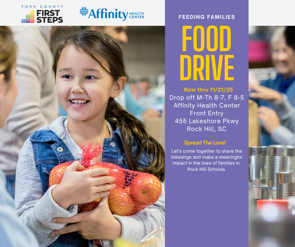 You can help feed families in Rock Hill Schools! Drop off nonperishable items at Affinity Health Center from now through…
