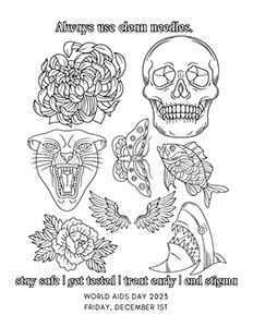 HONOR | EDUCATE | EMPOWERGrab a coloring page and show us your work for a chance to win a "Stay Safe & Relax" prize basket. Each coloring page has facts about World AIDS Day or illustrate ways we can all prevent HIV and reduce HIV stigma. You can even submit an original design that expresses your take on World AIDS Day. Deadline for entries Friday, 12/08/23 at 5:00 pm.